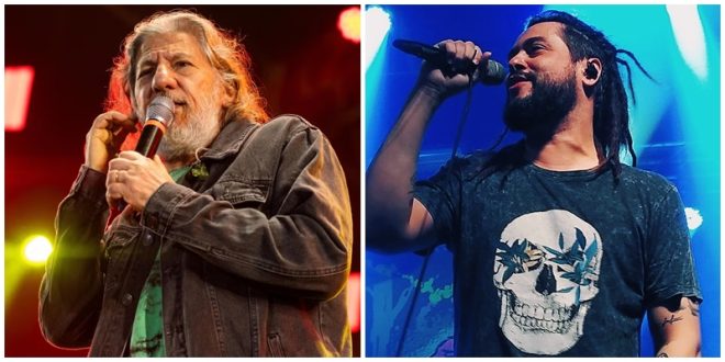 Vocalista da Tribo de Jah, Fauzi Beydoun, e Tales de Polli, cantor da banda Maneva. Fotos: Divulgação e Franciele Paulus